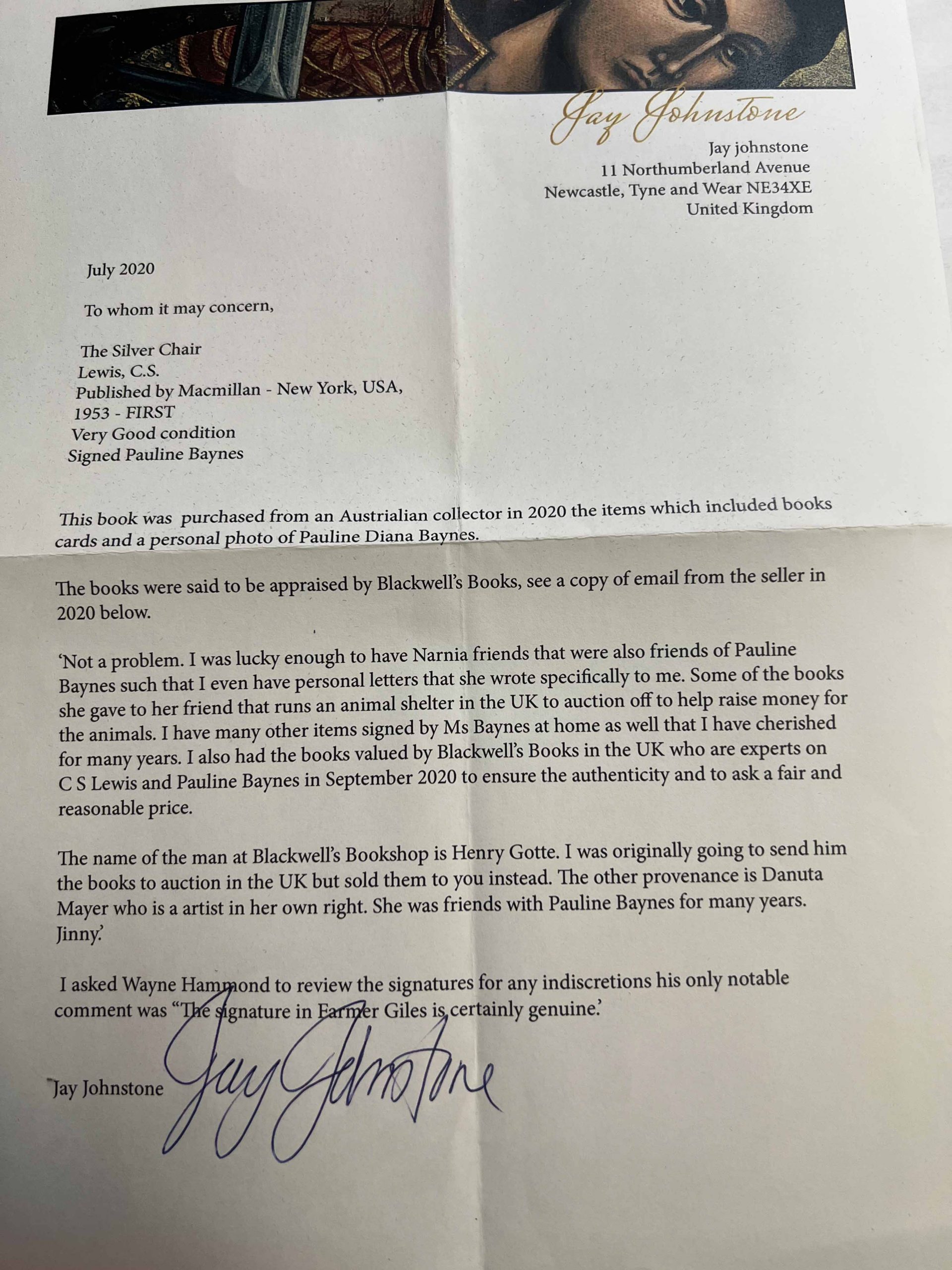 Cover letter from seller about original owner and signature check from Wayne Hammond.